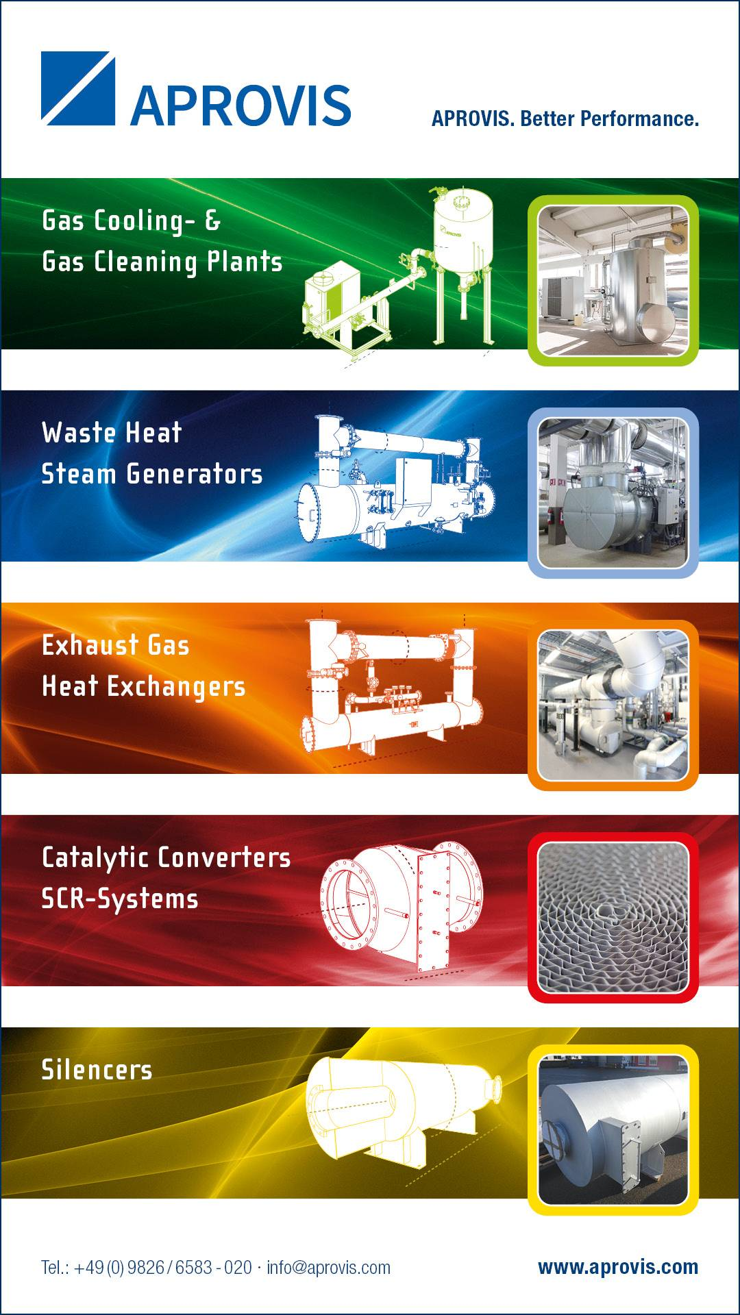 Founded in 2000, APROVIS developed into an expert in exhaust & gas technologies. Due to our export share of more than 50%, our products are used successfully all worldwide. We are familiar with and consider the different market / customer requirements and implement these to meet specific international requirements.
