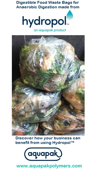 AD bags made from Hydropol™, an Aquapak product, are fully dissolvable and break down fully in both mesophilic and thermophilic systems. They contribute to the gas yield and reduce waste plastic removal costs. No de-bagging is required as they do not clog filters or conveyors. When fully digested, they will not form microplastics in the digestate and meet the requirements of PAS 110. They are also non-toxic and marine-safe.