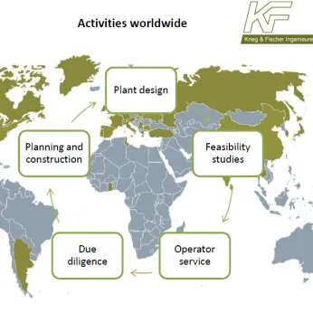 Krieg & Fischer Ingenieure GmbH is an expert engineering company specialized in the application and utilisation of biogas technology. We develop tailor-made solutions for biogas plants worldwide. Our company has an experience of more than 30 years and more than 150 references, all over Europe, North & South America, Asia and Africa