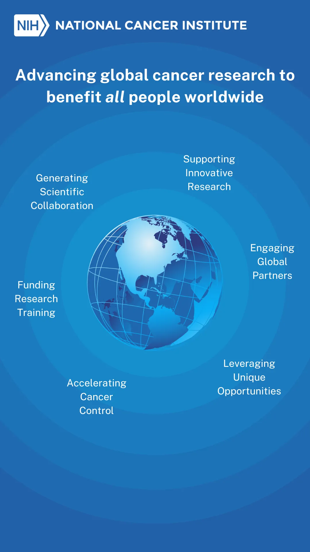 The National Cancer Institute (NCI) is the federal government's principal agency for cancer research and training. The NCI coordinates the National Cancer Program, which conducts and supports research, training, health information dissemination, and other programs with respect to the cause, diagnosis, prevention, and treatment of cancer, rehabilitation from cancer, and the continuing care of cancer patients and the families of cancer patients.