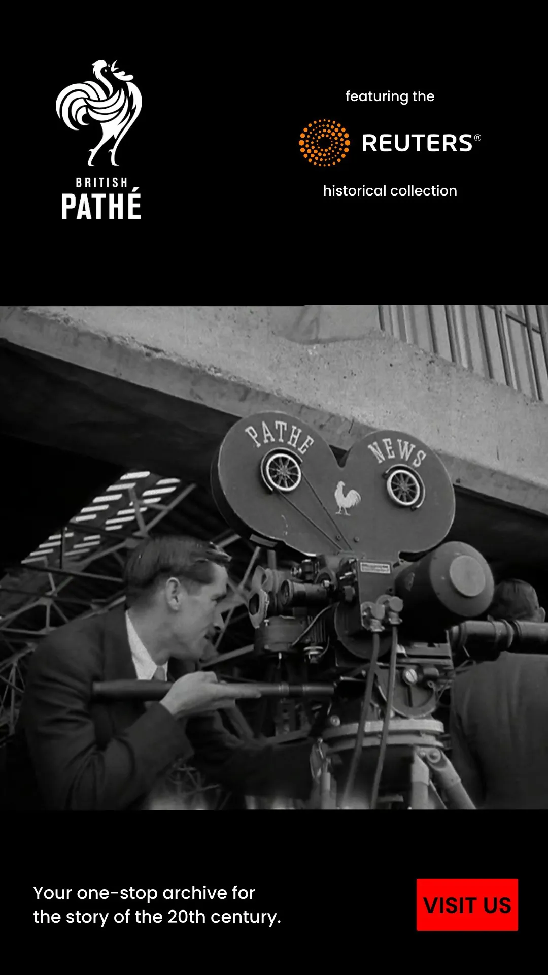 Today, British Pathé is a treasure trove of 85,000 films unrivalled in their historical and cultural significance. British Pathé also represents the Reuters historical collection, which includes more than 136,000 items from the news agencies Gaumont Graphic (1910-1932), Empire News Bulletin (1926-1930), British Paramount (1931-1957), and Gaumont British (1934-1959), as well as Visnews content from 1957 to the end of 1984. All footage can be viewed on the British Pathé website. www.britishpathe.com