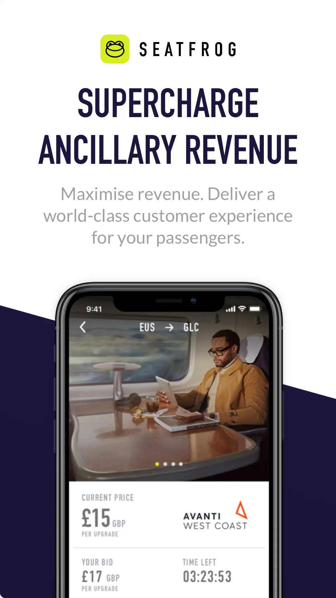 Named in the Skift Global top 50, Seatfrog is Rail’s leading upgrades platform. Using the Seatfrog API, European Rail operators have transformed how they maximise post booking revenue in their digital ecosystem across millions of journeys, recognising 3X ave upsell revenue growth and world leading NPS.