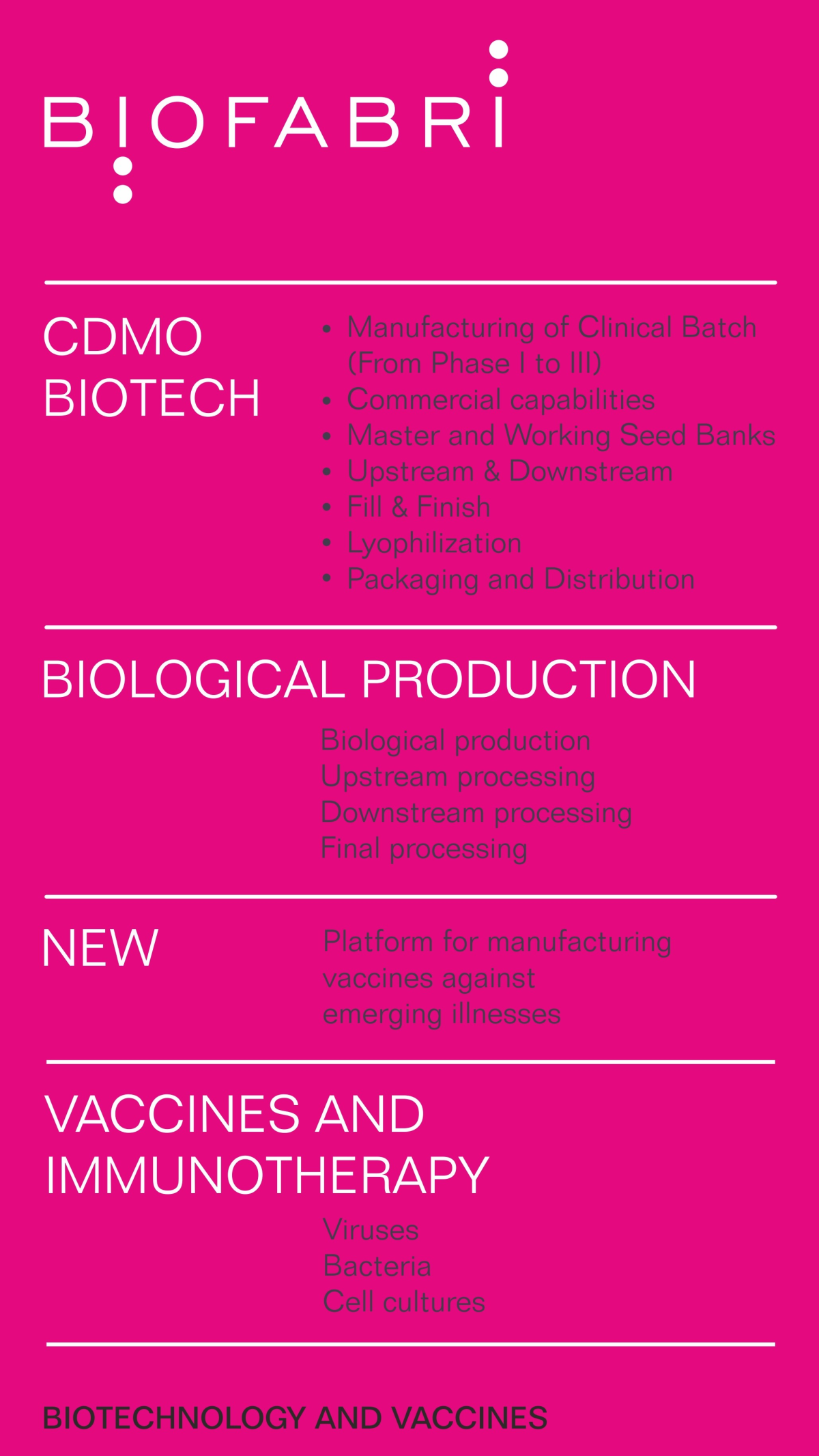 BIOFABRI is a CDMO. Focused on Human health, which holds EU GMP certification.