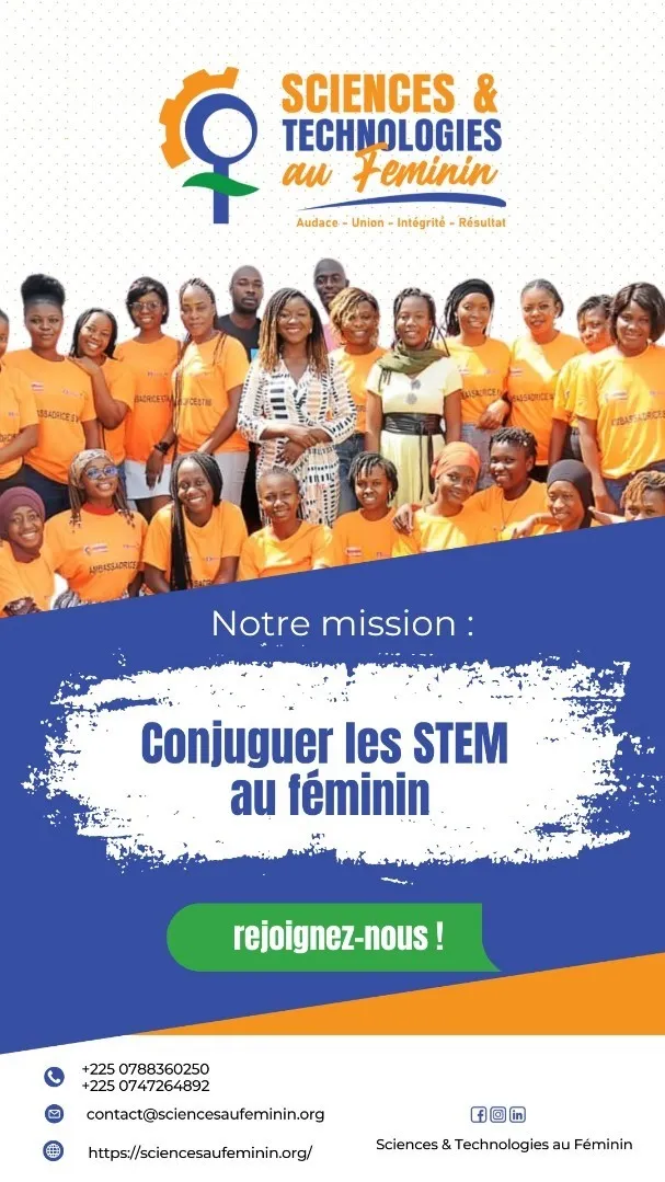Sciences et Technologies au Féminin (STF), registered under number 0191/MIS/DGAT/DAG/SDVA, is an organization established in 2016, dedicated to increasing and empowering young women and girls in Côte d'Ivoire through STEM programs. With initiatives such as "inspir'STEM" and the flagship event, the EmpoEmpow'her 'Her Science Expo, STF offers training, hands-on workshops, and mentorship opportunities. The organization aims to reduce gender inequalities in scientific and technological fields by strengthening skills and promoting the inclusion of young women in these strategic sectors.
