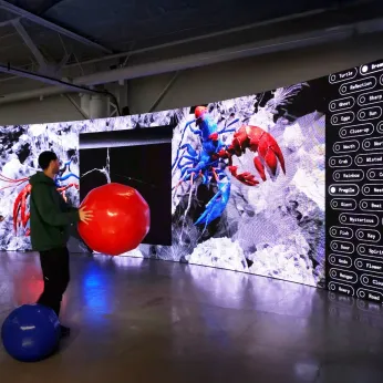 The studio works with the infinite and random combinations produced by interactive systems that the audience influences and transforms. The interaction is at the core of it all. It is only the relationship between the people and the piece that finalizes the artwork and gives it meaning.