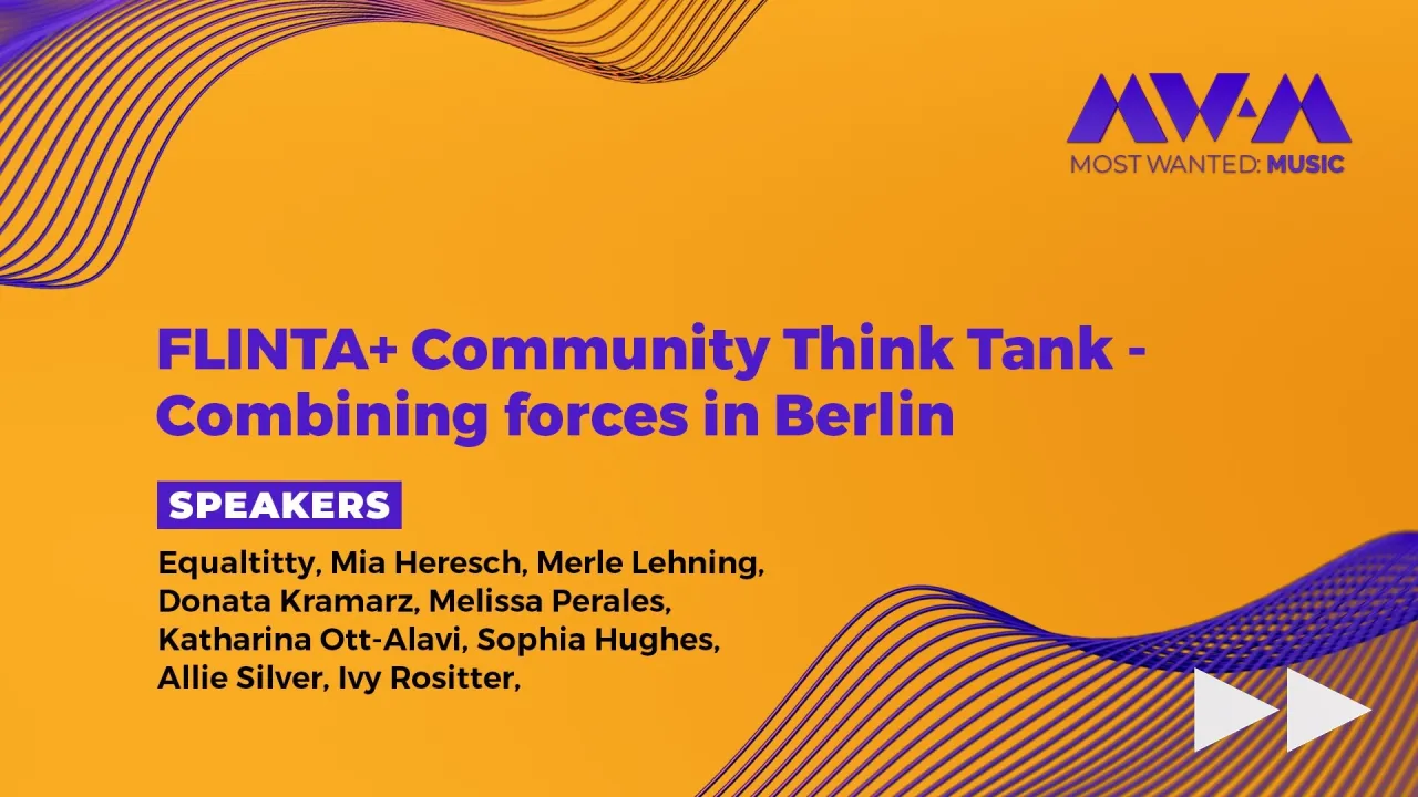 This session brings together various FLINTA+ music communities from Berlin to meet and learn from one another, and share experiences and best practices. By doing so, we as a community can help to create a safer space for FLINTA+ communities within the Berlin music industry and spread more visibility to each group. The FLINTA+ Community Think Tank is lead by Katharina Ott-Alavi, Project Lead of musicBwomen\*, and Sophia Hughes, Junior Programme Manager for Most Wanted: Music, and joined by Éclat Crew, GRRRL-NOISY, Night School, Music Is Her Passion, MusiCoWomen and more.